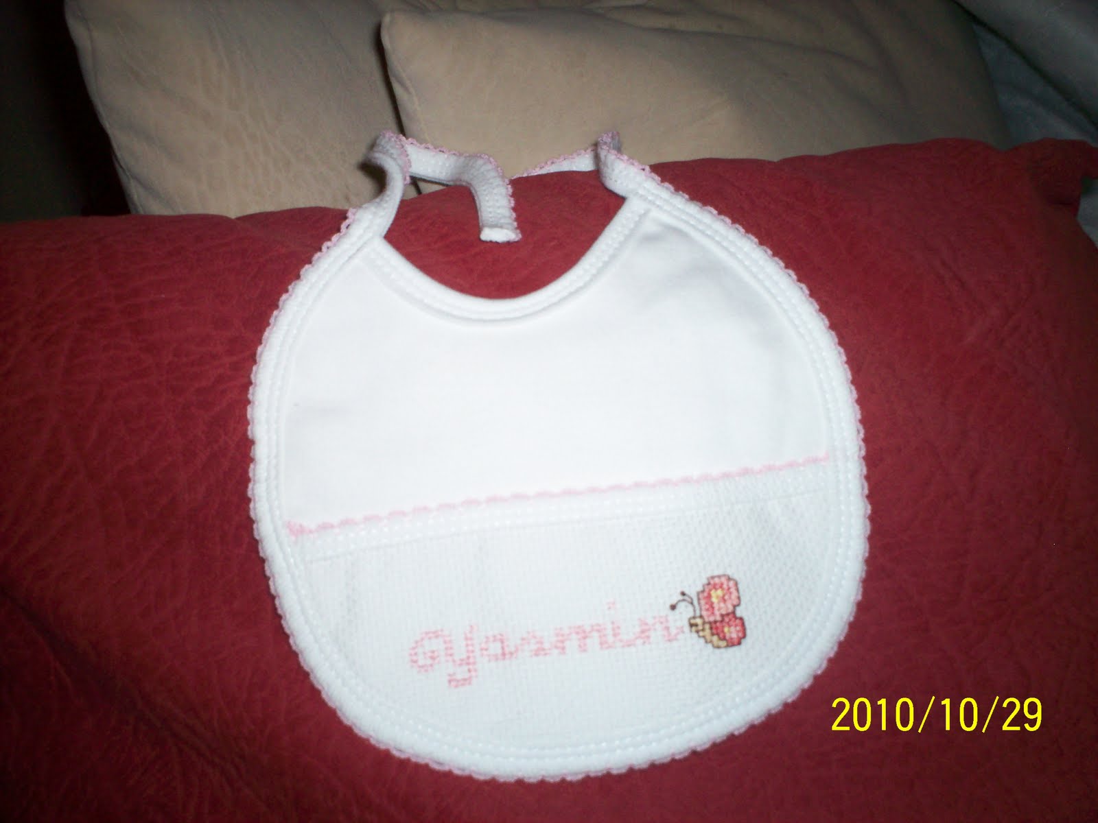 Este foi o meu ultimo trabalho em ponto cruz e unico feito nas ferias. Estava cansada e o tempo tambem foi pouco. Este trabalho é para uma menina linda que vai nascer brevemente.
